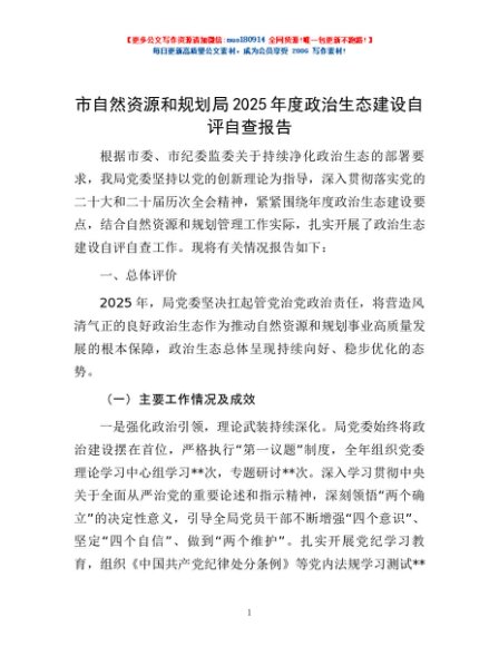 / 市自然资源和规划局2025年度政治生态建设自评自查报告