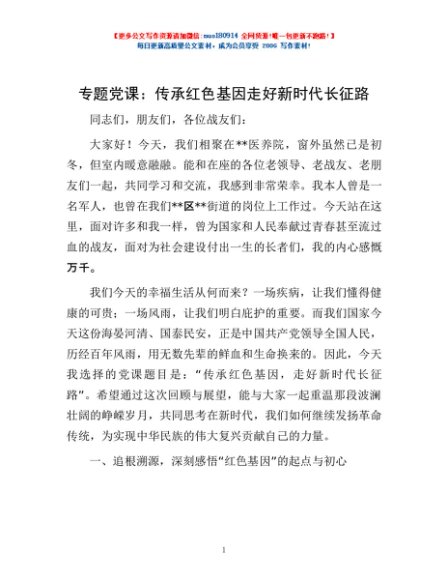 / 专题党课:传承红色基因 走好新时代长征路