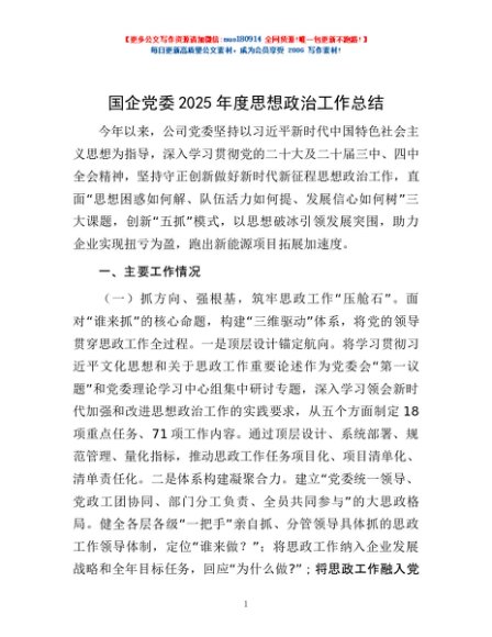 / 国企党委2025年度思想政治工作总结