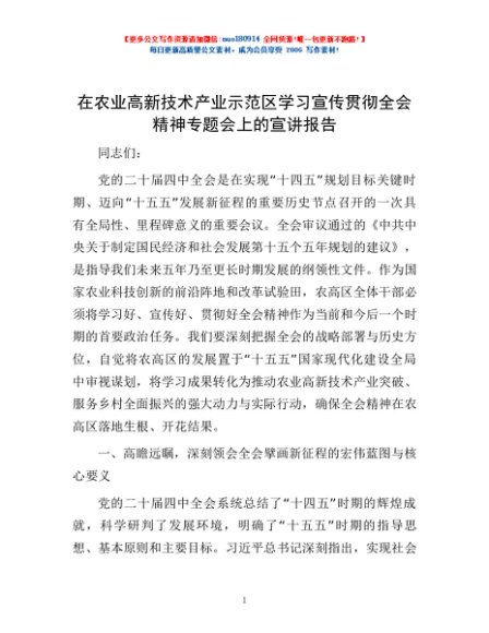 / 在农业高新技术产业示范区学习宣传贯彻全会精神专题会上的宣讲报告