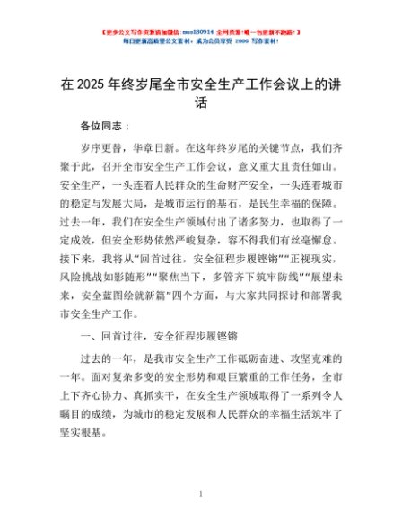 / 在2025年终岁尾全市安全生产工作会议上的讲话