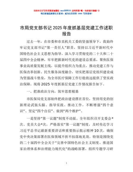 / 市局党支部书记2025年度抓基层党建工作述职报告