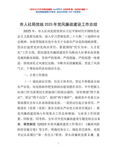 / 市人社局党组2025年党风廉政建设工作总结