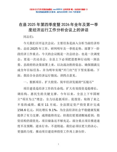 / 在县2025年第四季度暨2026年全年及第一季度经济运行工作分析会议上的讲话