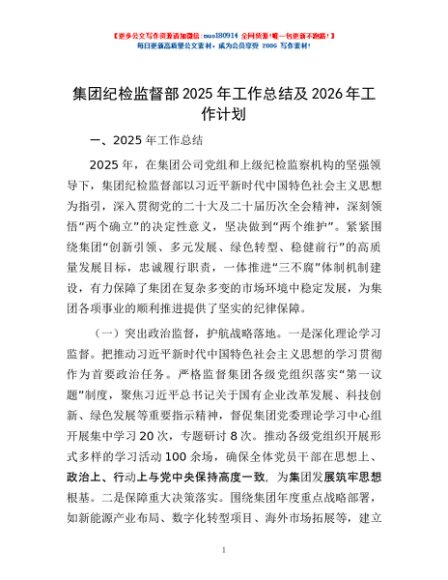 / 集团纪检监督部2025年工作总结及2026年工作计划