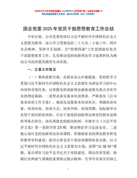 / 国企党委2025年党员干部思想教育工作总结