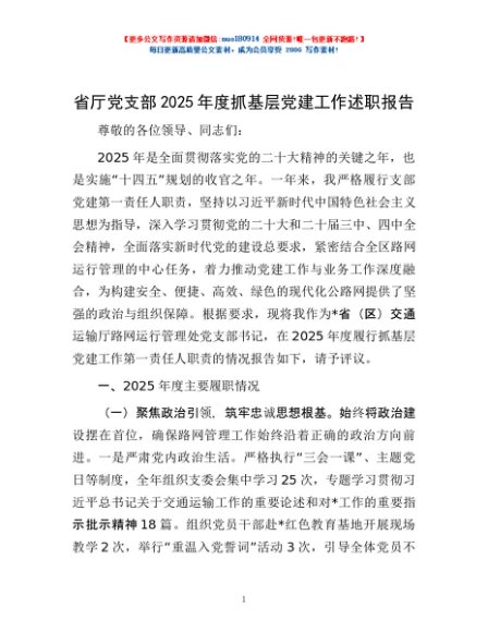 / 省厅党支部2025年度抓基层党建工作述职报告