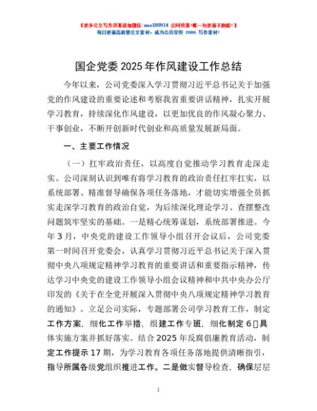 / 国企党委2025年作风建设工作总结