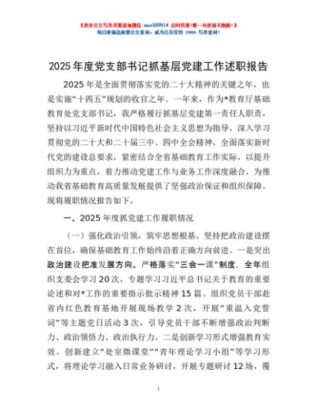 / 2025年度党支部书记抓基层党建工作述职报告