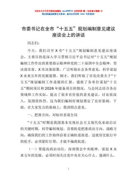 / 市委书记在全市“十五五”规划编制意见建议座谈会上的讲话