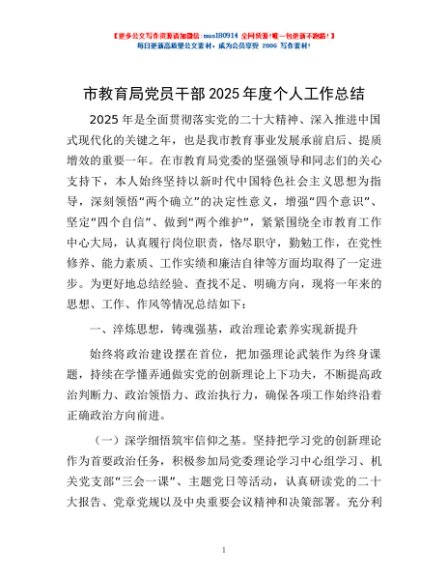 / 市教育局党员干部2025年度个人工作总结