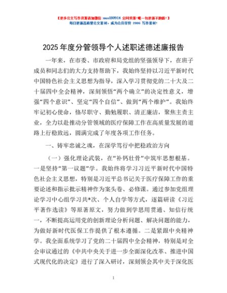 / 2025年度分管领导个人述职述德述廉报告