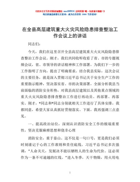 / 在全县高层建筑重大火灾风险隐患排查整治工作会议上的讲话