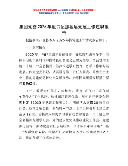 / 集团党委2025年度书记抓基层党建工作述职报告