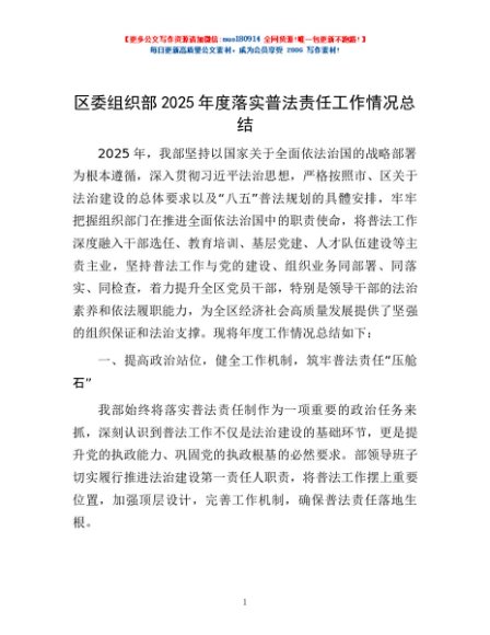 / 区委组织部2025年度落实普法责任工作情况总结