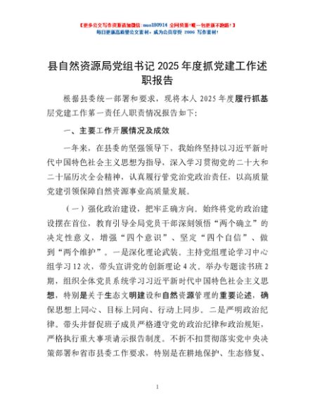 / 县自然资源局党组书记2025年度抓党建工作述职报告
