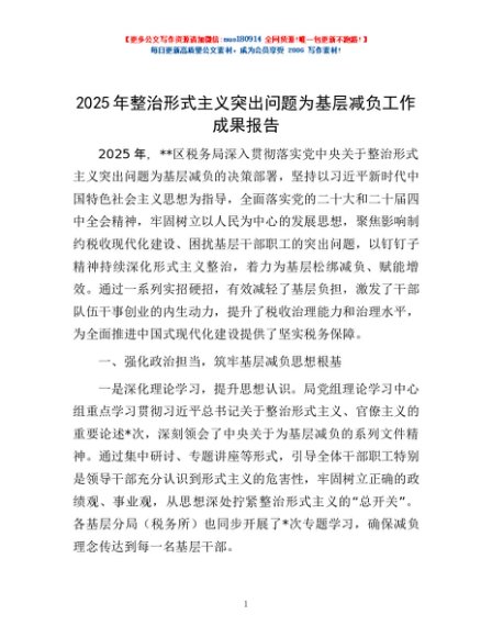 / 2025年整治形式主义突出问题为基层减负工作成果报告