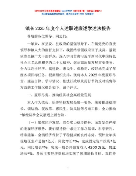 / 镇长2025年度个人述职述廉述学述法报告