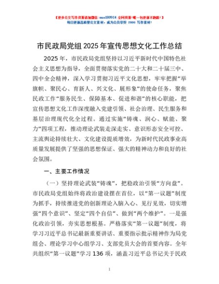 / 市民政局党组2025年宣传思想文化工作总结