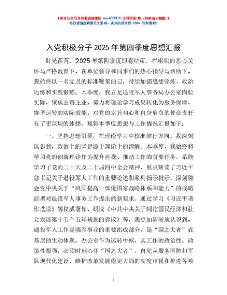 / 入党积极分子2025年第四季度思想汇报