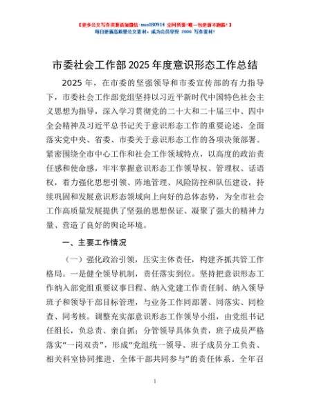 / 市委社会工作部2025年度意识形态工作总结