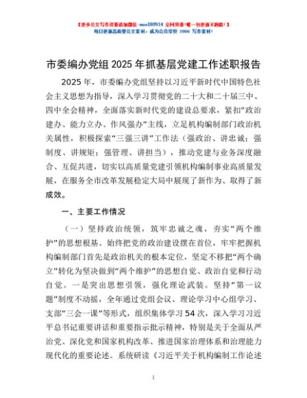 / 市委编办党组2025年抓基层党建工作述职报告
