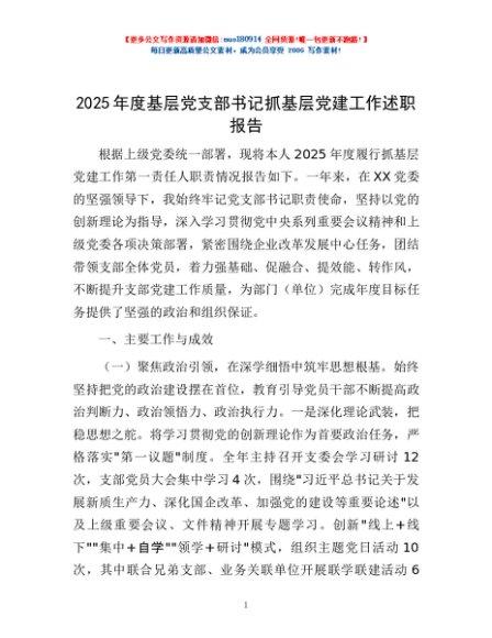 / 2025年度基层党支部书记抓基层党建工作述职报告