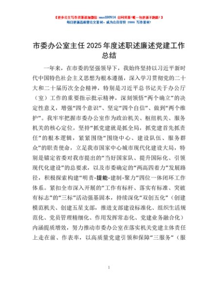 / 市委办公室主任2025年度述职述廉述党建工作总结