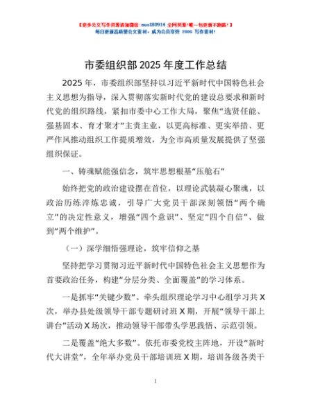 / 市委组织部2025年度工作总结
