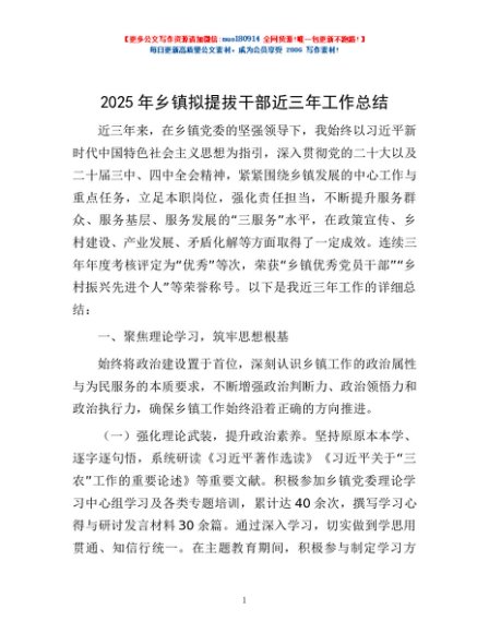 / 2025年乡镇拟提拔干部近三年工作总结