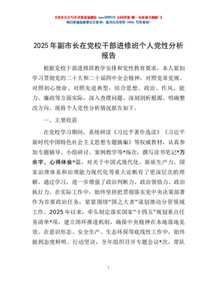 / 2025年副市长在党校干部进修班个人党性分析报告