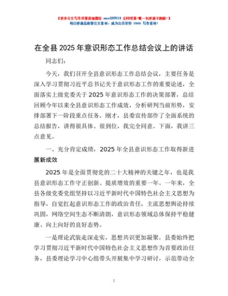 / 在全县2025年意识形态工作总结会议上的讲话