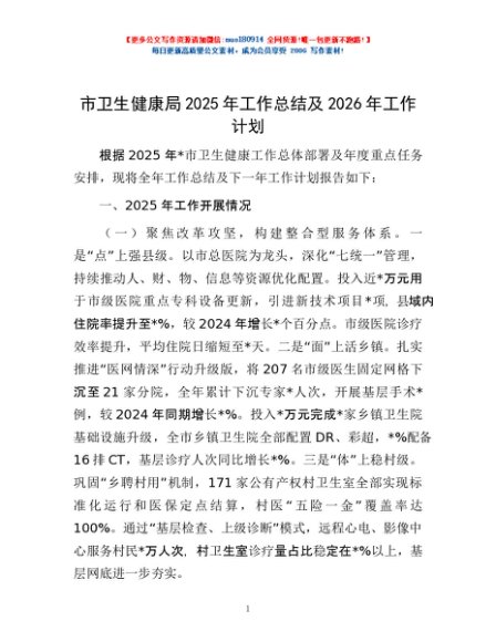 / 市卫生健康局2025年工作总结及2026年工作计划