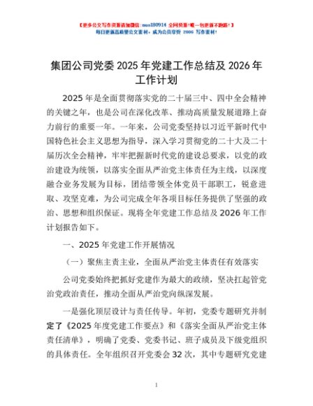 / 集团公司党委2025年党建工作总结及2026年工作计划