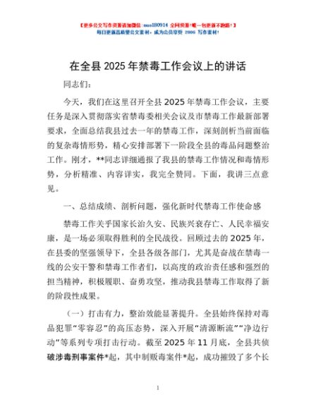 / 在全县2025年禁毒工作会议上的讲话