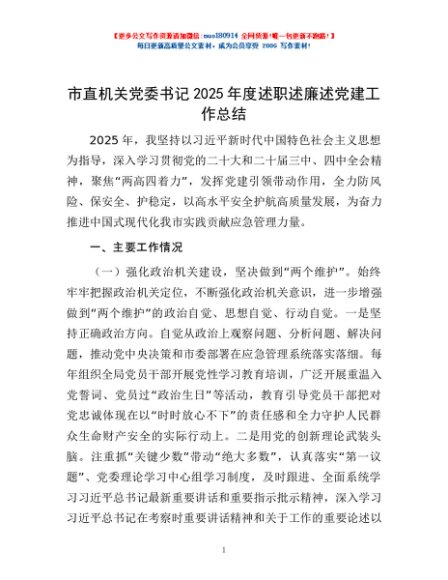 / 市直机关党委书记2025年度述职述廉述党建工作总结