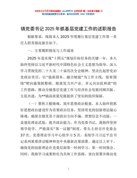 / 镇党委书记2025年抓基层党建工作的述职报告