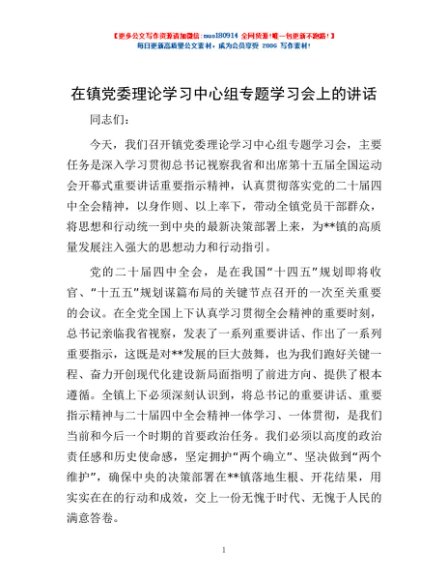 / 在镇党委理论学习中心组专题学习会上的讲话