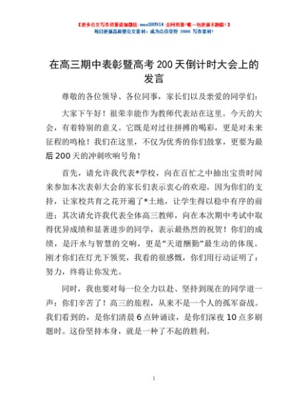/ 在高三期中表彰暨高考200天倒计时大会上的发言