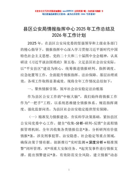 / 县区公安局情报指挥中心2025年工作总结及2026年工作计划
