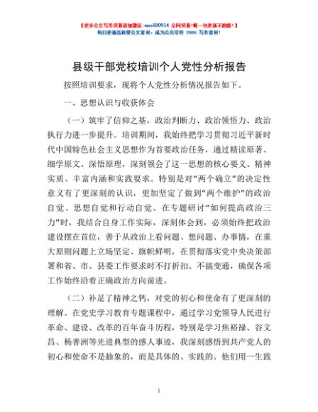 / 县级干部党校培训个人党性分析报告