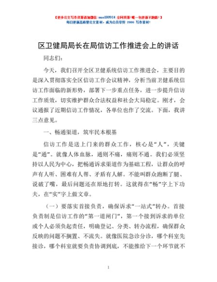 / 区卫健局局长在局信访工作推进会上的讲话