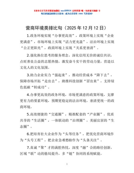 / 营商环境类排比句(2025年12月12日)