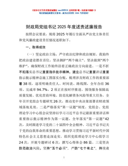 / 财政局党组书记2025年度述责述廉报告
