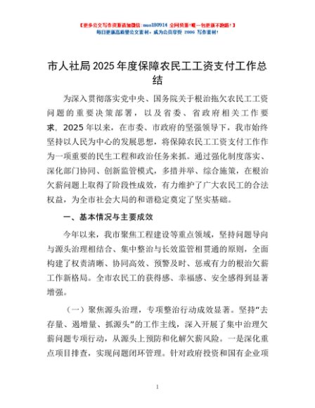 / 市人社局2025年度保障农民工工资支付工作总结