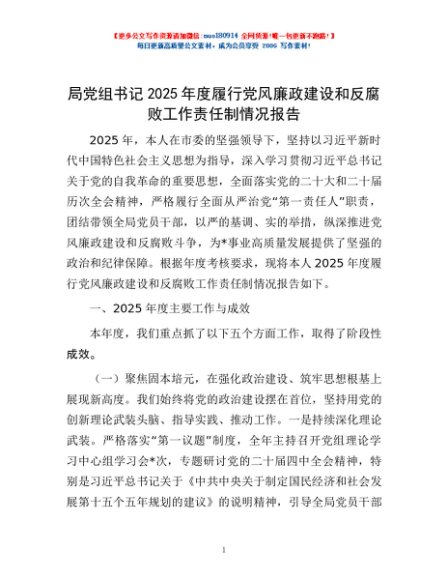 / 局党组书记2025年度履行党风廉政建设和反腐败工作责任制情况报告