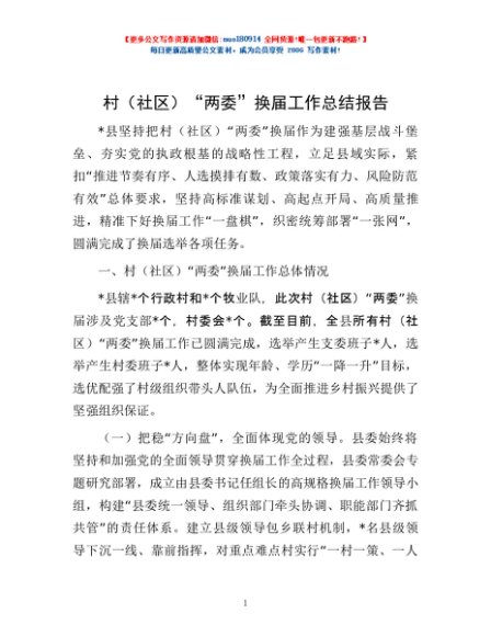 / 村(社区)“两委”换届工作总结报告