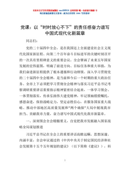 / 党课:以“时时放心不下”的责任感奋力谱写中国式现代化新篇章