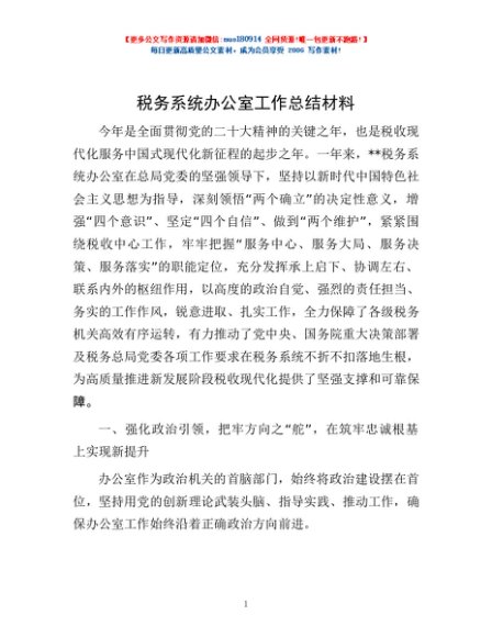 / 税务系统办公室工作总结材料