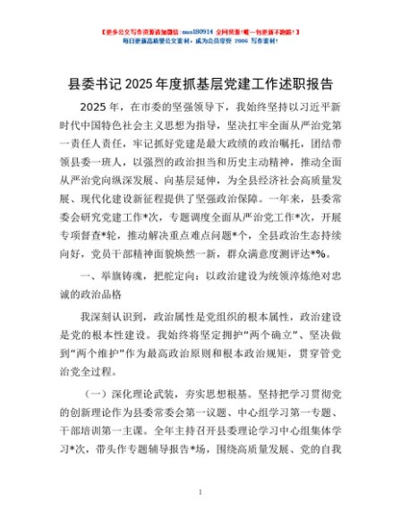 / 县委书记2025年度抓基层党建工作述职报告